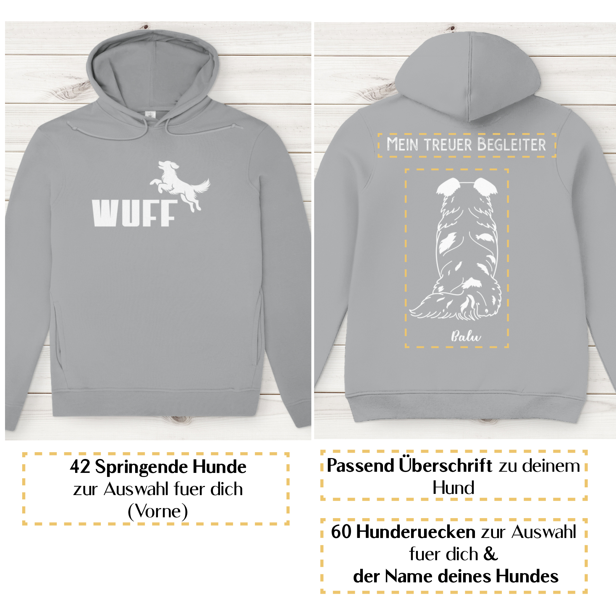 Eine Auswahl edler Materialien, die durch Eleganz und Wandelbarkeit überzeugt. Der stilvolle und moderne Premium-Bio-Hoodie für den Alltag mit Stil und Vielseitigkeit auf höchstem Niveau, um deine Verbundenheit zu Hunden zum Ausdruck zu bringen.